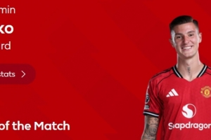 95分钟绝平,英超官方:舍什科当选曼联1-1西汉姆全场最佳球员