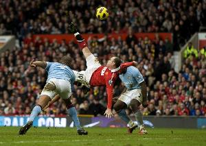 曼联官推重温经典:2011年的今天鲁尼在曼市德比上演惊天倒钩