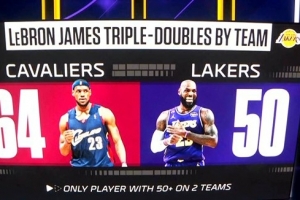 昨日湖人战胜独行侠,詹姆斯砍下28分10篮板12助攻,拿到湖人生涯第50次三双。