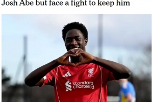 TA:利物浦想留住15岁青训天才乔希·阿贝,多家英超球队密切关注