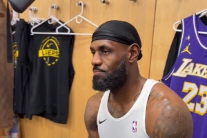 NBA官方Instagram晒出对詹姆斯赛前的更衣室采访。