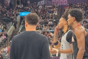 死死贴防!卡斯尔和主帅米奇沟通 阿门寸步不离 不忘交流一波
