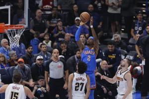 体育资讯03月10日讯 NBA常规赛,雷霆在主场以129-126险胜掘金,亚历山大三分绝杀。赛季至今,雷霆面对掘金的战绩是3胜0负。