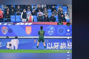 王钰栋上半场阻挡门将开球后,遭到青岛海牛球迷辱骂↓
