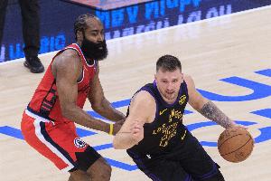 哈登本赛季场均数据:25.4分8.1助攻3.1三分,这3项数据放眼全联盟,只有东契奇能做到都比他好。